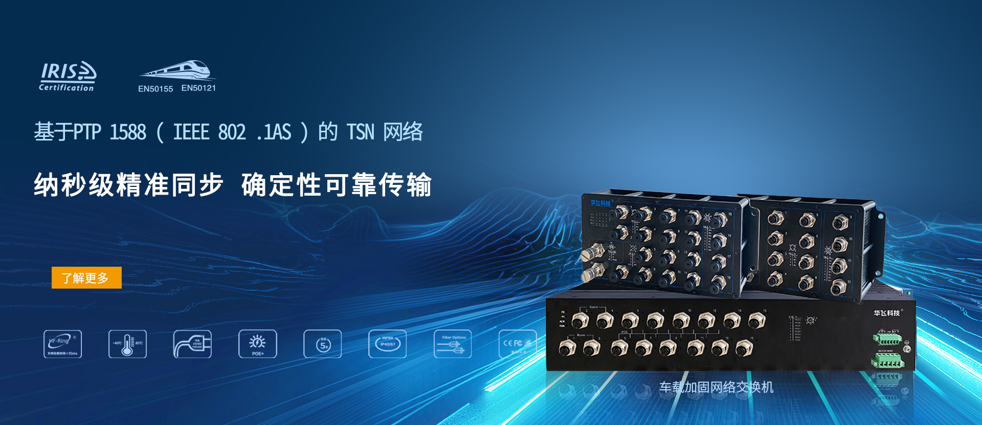 华飞科技主要产品体系:工业交换机、播控器、综合多业务高清视频、智能电源PDU、光电转换器。所有产品均拥有自主知识产权。工业以太网交换机包含三层交换机、二层交换机、车载工业交换机、POE交换机、矿用本安型交换机等。